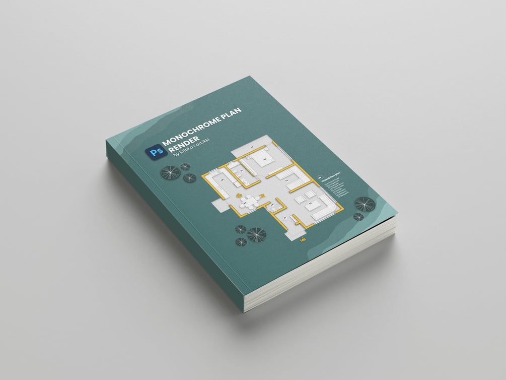 Monochrome Architecture Plan Render In Photoshop