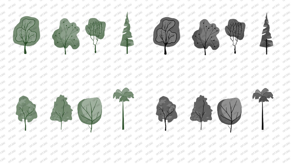 This pack includes high-resolution PNG files of 8 Trees with and without shadows, and brush preset ABR.