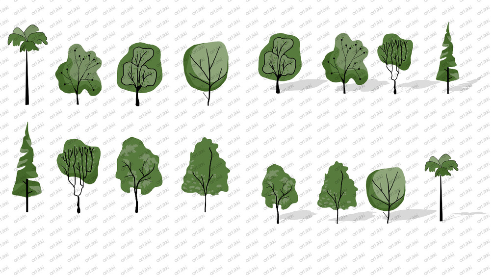 This pack includes high-resolution PNG files of 8 Trees with and without shadows, and brush preset ABR.